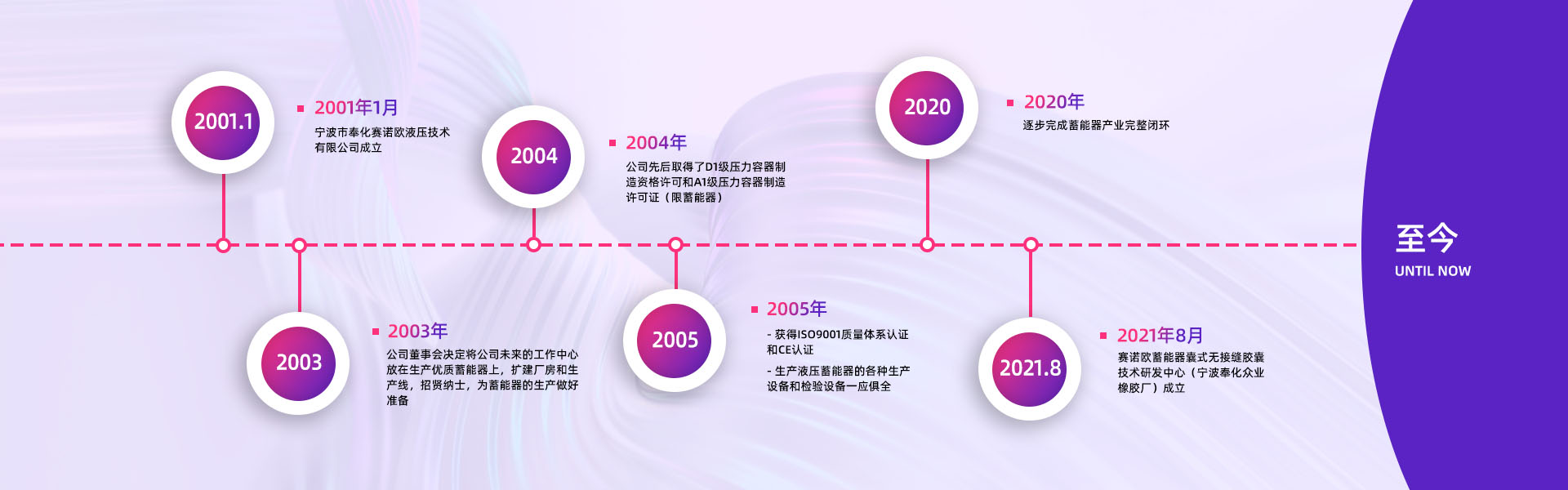 寧波市奉化賽諾歐液壓技術(shù)有限公司創(chuàng)建于2001年7月,是國(guó)內(nèi)優(yōu)秀的液壓蓄能器專(zhuān)業(yè)制造公司,制造設(shè)備齊全,檢測(cè)手段完善。同時(shí)也是探索蓄能器囊式結(jié)構(gòu)一體化的科研創(chuàng)新型企業(yè)。 2001年,公司董事會(huì)決定將公司未來(lái)的工作重心放在生產(chǎn)優(yōu)質(zhì)蓄能器上。公司一方面著手于廠(chǎng)房擴(kuò)建和生···